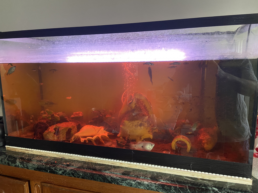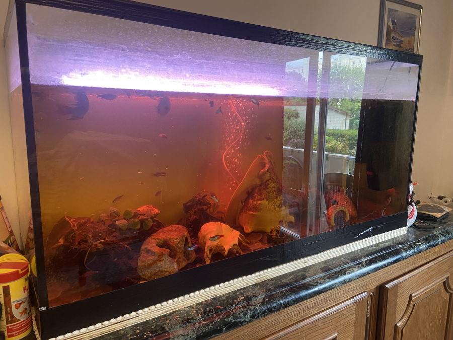 Vend mon aquarium de 200litres : 1,00long x 0,40larg x 0,50 haut Matériel moins de 6 mois Chauffage + pompe à air + filtre + néon led mutilcolor Avec ou sans poissons : 5 cichlides nains 5 néons rouge / bleu 4 danio zèbres 4 guppys mâles et 1 femelles 4 corydoras 2 ancistrus Les poissons sont avec l’aquarium ou vendus séparément . Prix 180e URGENT ‼️ Négociable !