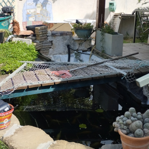 Ma famille se sépare d'un bassin de 5000L entretenu depuis 8ans. Nous vendons par conséquents les poissons ainsi que la pompe et une passerelle en ensemble ou séparés. L'offre contient: - Une carpe koï de 65cm de couleur bleu/rouge - Une carpe commune de 60cm de couleur noire - Environ 40 poissons rouge jaune et blanc dont 30 Comètes faisant entre 20 et 25cm - Environ 10 poisson de rivière commun de couleur noire - Une pompe Oase 6000L avec des filtres neufs (changés 08/2023) - Une passerelle en bois Les poissons ont donc au maximum 8ans pour les plus vieux (carpes) et les poissons rouges sont généralement plus jeunes. Pour plus d'informations veuillez me contacter au 06.34.45.30.17