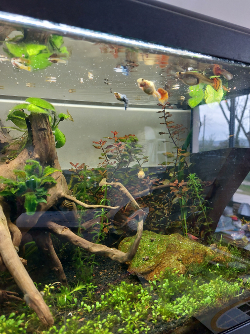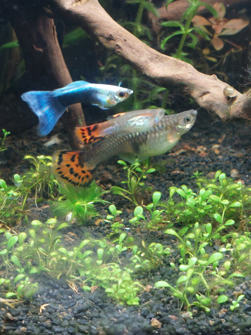 Bonjour, Nous vendons notre communauté de guppy, devenue trop grande pour notre aquarium ! 3 femelles adultes, 1 mâle et beaucoup d'alvins entre 1 mois et 1 semaine ... environ une quarantaine voir plus... difficile à compter un par un !