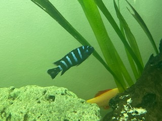 Vends 4 bébés cichlidés bleu rayé. Ils ont environ 4 à 5mois. Bonne santé 15€ les 4 ou 4€ l'unité.