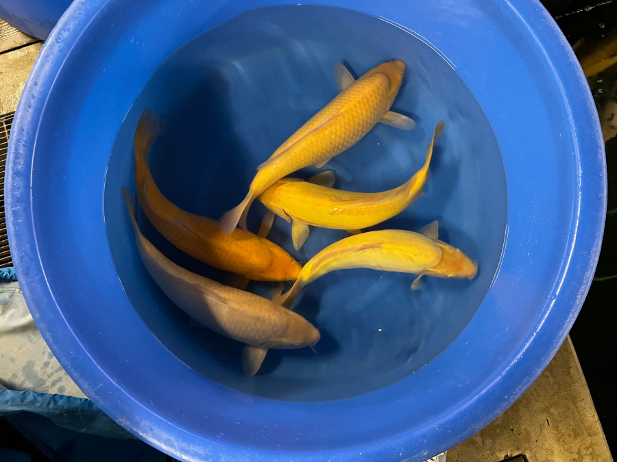 Devant malheureusement arrêter mon installation pour mes koi je vends mes koi japonais à passionnés qui sauront et pourront en prendre soin sur le long terme. Vente avec la facture d'origine, l'espèce de koi, le nom de l'éleveur japonais et le montant pour transparence totale. Sont à vendre à venir chercher à mon domicile début mars 2023 : yamabuki 60 cm environ et yamabuki bien jaune taille moyenne, 3 purachina en normal, doitsu et ginrin, ginrin kigoi, des karachigoi jaunes, roses saumon, de tailles moyennes à grandes, en normal, doitsu et ginrin, certains akamé, 2 grandes orangi. A venir : photo individuelle de chaque koi dans mon bac de mesure afin que vous ayez les tailles exactes.