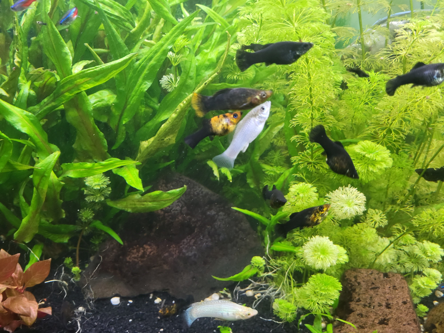 Bonjour, je vends des mollys, noirs, damaltiens, orange.