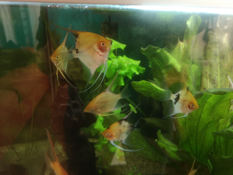 Scalaires nés le 16 juin 2021 Dimensions sans les nageoires : 5 centimètres environ Elevés par leurs parents avec amour !