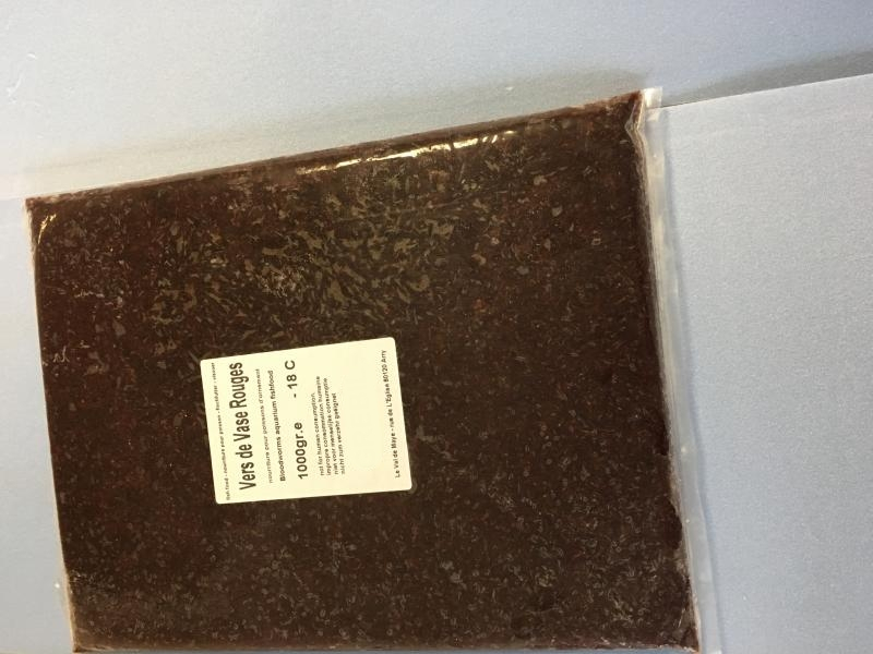 Les vers de vase sont congelés, conditionnés en plaque de 1 kg. Format idéal et économique pour les grands consommateurs.