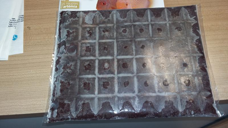 Les vers de vase sont congelés, conditionnés en plaque de 500 grammes prédécoupée en 48 compartiments