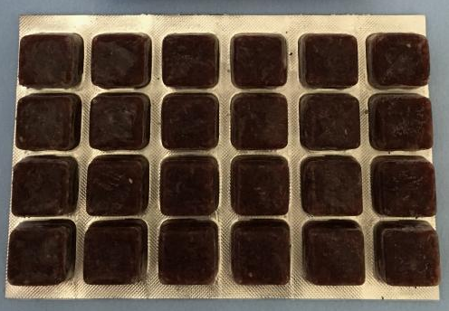 Les vers de vase rouges sont congelés, conditionnés en blister de 100 grammes avec 24 compartiments pour faciliter le dosage et la distribution.