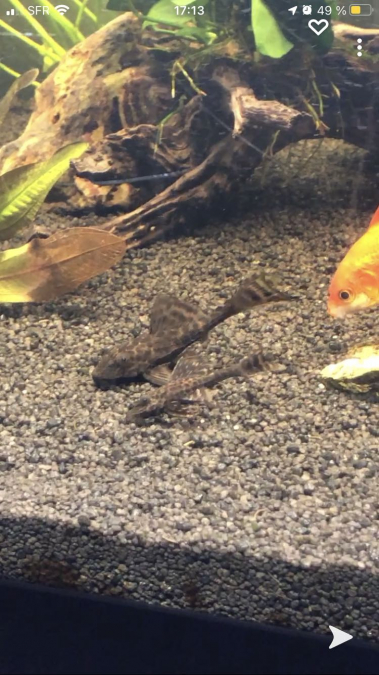 Bonjour, Je vends 2 voiles de chine ainsi que 2 plécos. Ils mesurent entre 5 et 8 cm environ et vivent dans un 250 litres. Ils n'ont jamais eu de soucis particulier et vivent en communauté sans problème. Les deux espèces sont à 3 euros pièce.