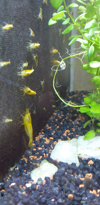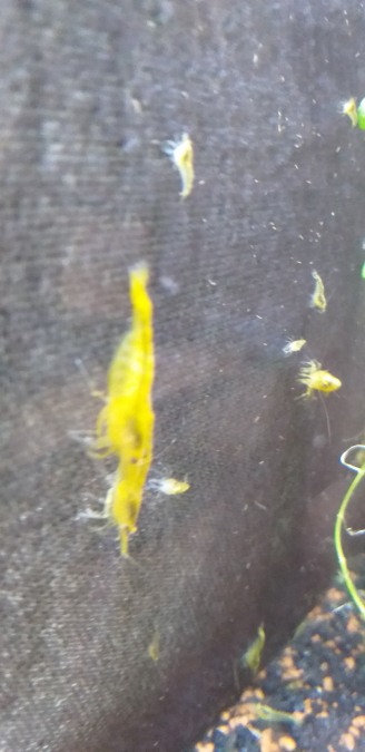 Vends crevettes Yellow néons, superbe couleur jaune citron, super souche actuellement. Elles font toutes un minimum de 12 à 15 mm. Toutes les photos sont de mes bacs et non d'un site internet. 2€/pièce, ou 20 € les 10. PAS D'ENVOI.