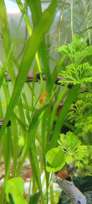Bonjour PtiteNoli , C'est la partie qui se fend quand une crevette mue. Elles se recroquevillent comme ça quand elles se nettoient, si elles ont besoin de garder leur exosquelette souple ou de desserrer leur exosquelette en préparation de la mue.