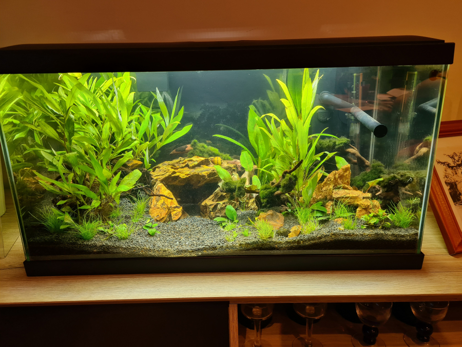 Bonsoir ! Petite photo du dernier ajout, plusieurs petites anubias ‘Pangolino’ sur la racine, et petite question : J’ai actuellement 32 cardinalis, 17 Japonica, une vingtaine de Neocaridina, bien 200 planorbes et physes si ce n’est plus 😅 et je me demande si ajouter des cardinalis me mettrait en surpop, j’me dis que 40/45 ça doit être jouable, peut-être même 50, sachant que je n’aurais aucun au... Afficher la suite