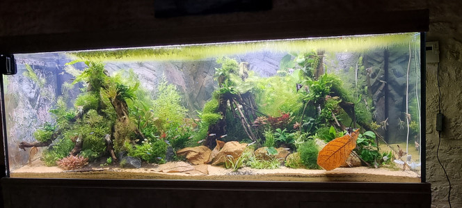 mon aquarium de 427 L à été mis en eau le 1/9/21( malawi) mon filtre ext de 2000L/H est pourvu d'une lampe UV il y a quelques jours j'ai stoppé la lampe UV car j'avais lu qu'elle pouvais détruire les bonnes bactéries et depuis hier plein d'algues vertes filamenteuses sur les pierres ,les plantes et même un peu le sable paramètres de l'eau de l'aquarium ce jour: temp: 25/26°, PH entre 7.5 et 8 ,GH... Afficher la suite