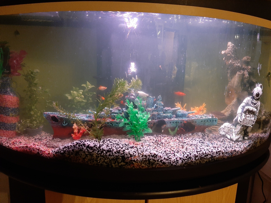 Voilà, depuis peu, on m'a offert un petit aquarium de 80l. Déçu par la pompe de filtration extrêmement bruyante. Mais bon, changement prévu.