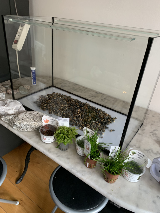 Hello ! voici une photo de mon 1er aquascaping réalisé dans mon 60L, je suis débutante et je suis a l'écoute de vos avis et conseil :))
