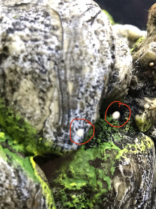 J’ai 2 « points » collés sur la vitre de mon aquarium depuis quelques jours. Est-ce que vous savez ce que ça peut être? Des œufs ?