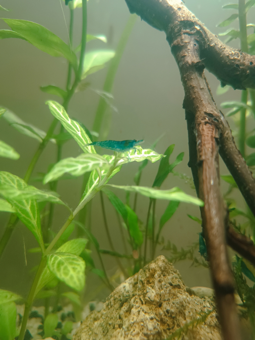 Le bac à crevettes, avec bubulles : C'est bien de vouloir un bac low-tech, mais quand les crevettes migrent toutes vers le brin de ceratophyllum qui flotte sous la surface, il faut se rendre à l'évidence : le biotope n'est pas mûr. L'aquarium n'a qu'un mois, après tout. Il est cyclé, mais super jeune. Donc j'ai installé un filtre qui envoie de la bubulle plusieurs heures par jour. Moyennant ça, t... Afficher la suite