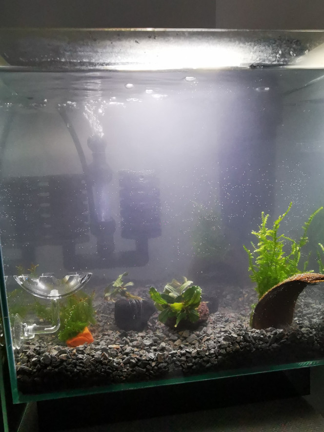 Petite surprise dans mon bac de 48l cela fait 1semaine qu'il est en eau avec des plantes naturelles bien-sûr, et tout a coup un alevin apparu ! D'où vient il? Qui est il? Que fait il?