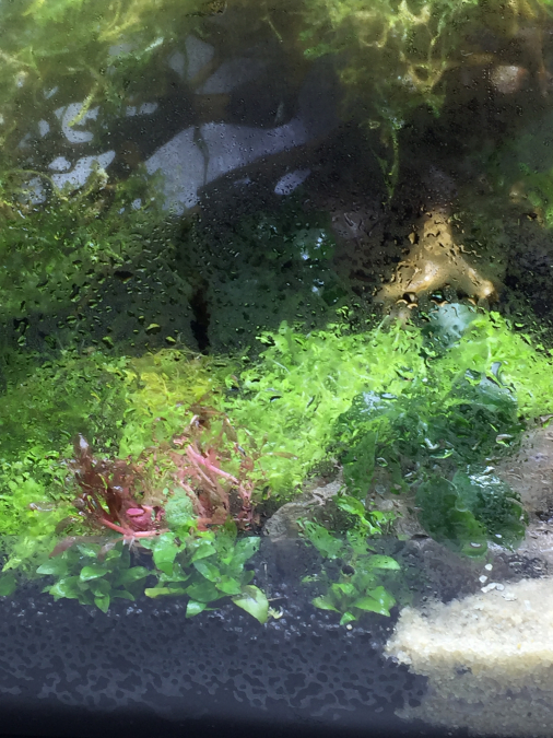 L'eau a mis vraiment beaucoup de temps à s'éclaircir (racine + tourbe/argile + manado). Ce n'est toujours pas parfait mais c'est bien plus cristallin.