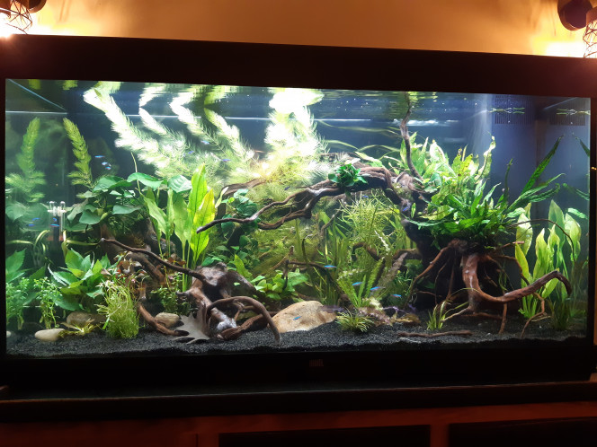 Avant/Après - 1 an d'évolutions dans le bac communautaire : Changements principaux: L'eau a mis vraiment beaucoup de temps à s'éclaircir (racine + tourbe/argile + manado). Ce n'est toujours pas parfait mais c'est bien plus cristallin. Installation d'un éclairage LED à la place du T5. Les plantes ont très bien poussé, notamment les cryptocorines et les valisnerias qui font leurs vies et se mu... Afficher la suite