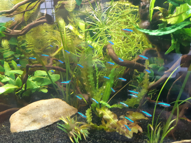Les plantes ont très bien poussé, notamment les cryptocorines et les valisnerias qui font leurs vies et se multiplient fortement. Mon vieil Anubias (je l'ai depuis 1998) se fait enfin plaisir avec un sol riche et s'est développé comme jamais.