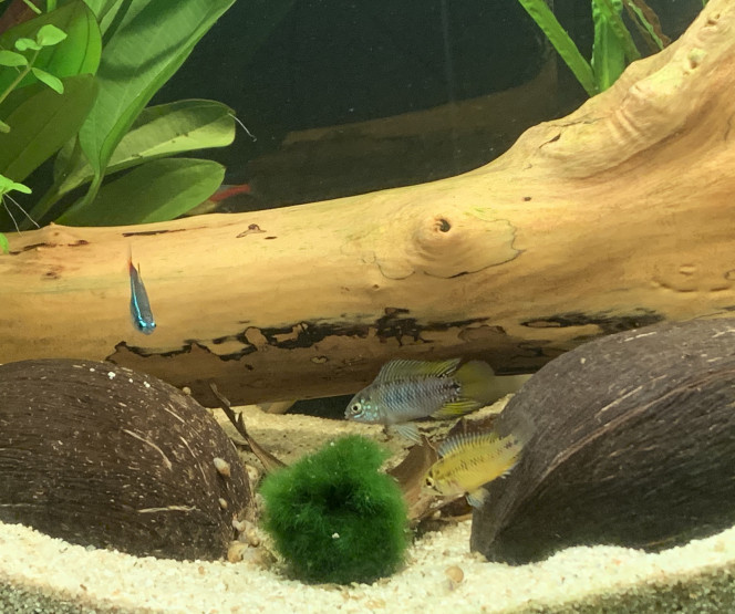 Bonjour, j'ai un problème assez important avec la population de mon aquarium. Il s'agit d'un 30L, planté naturellement (plantes oxygénantes/dépolluantes et mousses) avec des roches et une grande racine (je peux ajouter des photos si besoin), actuellement en marche depuis 5mois. Après l'avoir cyclé pendant plus de 3 semaines, j'y ai d'abord introduit un escargot (neritina), qui a tapissé ma racine... Afficher la suite