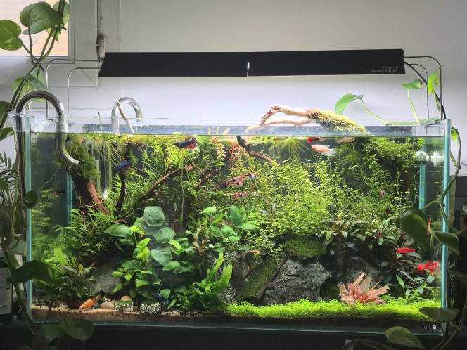 Bonjour à tous, nouveau venu sur le forum, je suis en cours de lancement sur un aqua de 300L. Le hardscape est fait (Coeur sur aquadesigner shop et M. Wolinski) et nous sommes en cours de dark start depuis maintenant une semaine et demie et ce jusqu'au 01/11. L'aquarium sera planté de mannière assez conséquente (diverses variété de rotalas, bucé, anubias, crypto et gazonnantes). J'ai une bo... Afficher la suite