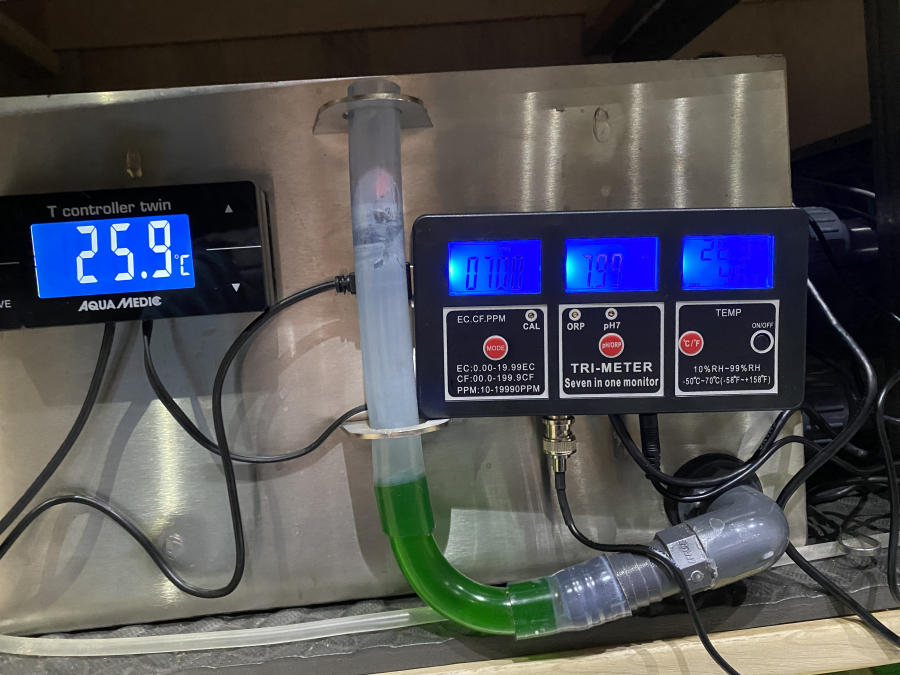 Pour le PH j'arrive à 7.98, et mon test à goutte me dis 8 (bien sur après calibrage de la sonde)