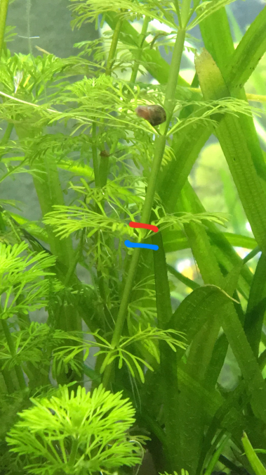 Bonjour à tous, petite question qui n’a pas énormément d’importance mais je voulais m’assurer d’une chose. Quand on veut bouturer une plante et qu’on dit de couper en dessous d’un noeud, on est d’accord qu’on coup au niveau du trait bleu comme sur la photo et pas du trait rouge c’est bien ça ?