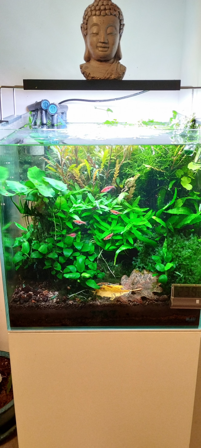 Bonjour, j'ai remis à zéro mon aquarium il y a un mois: blackout 6 jours et enlevé toutes les plantes car elles étaient couvertes d'algues vertes et poussaient très mal. Une fois bien nettoyé je l'ai replanté avec des variétés faciles à croissance rapide car j'avais beaucoup de doutes concernant l'éclairage d'origine de mon juwel 350 led : j'ai mis de la vallisnéria, Bacopa monieri, Hydrocotyl... Afficher la suite