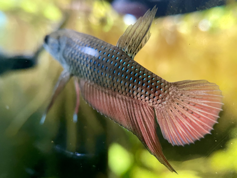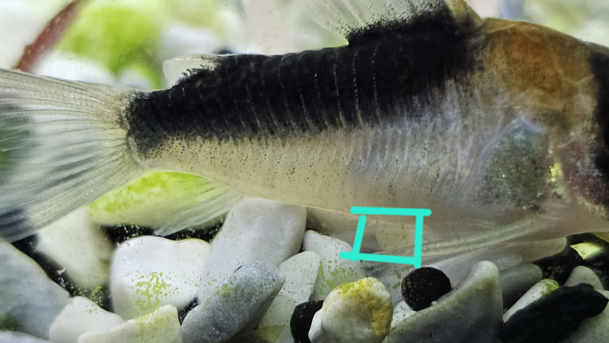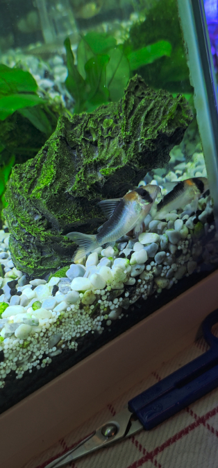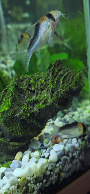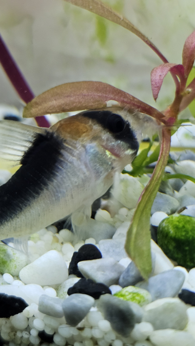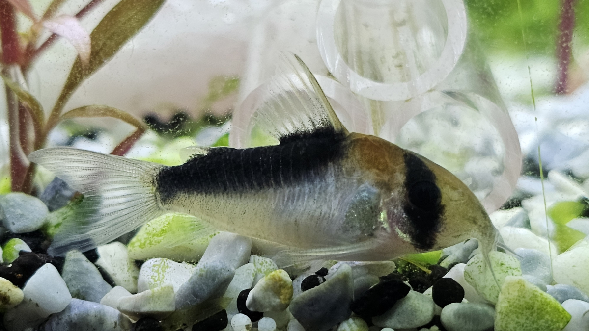 Ma femelle corydora est en pleine ponte ! J'ai eu la chance de le voir sur le moment et de le filmer. Je ne peux pas partager la vidéo mais voici quelques photos où on voit clairementl'œuftenu entre les nageoires sous le ventre !