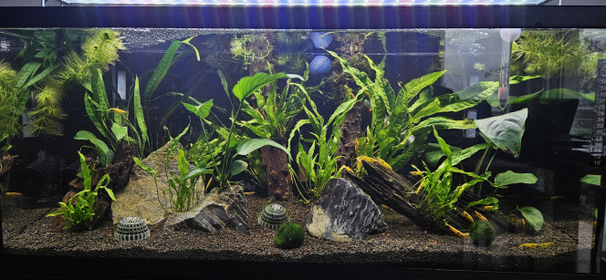 Une fois bien nettoyé je l'ai replanté avec des variétés faciles à croissance rapide car j'avais beaucoup de doutes concernant l'éclairage d'origine de mon juwel 350 led : j'ai mis de la vallisnéria, Bacopa monieri, Hydrocotyl... Afficher la suite