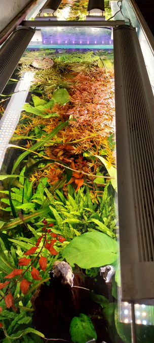 Je vous laisse quelque photo du bac ainsi qu’une photo où l’on voit bien les rotalas qui ont complètement fondu ainsi que l’althernantera mini.