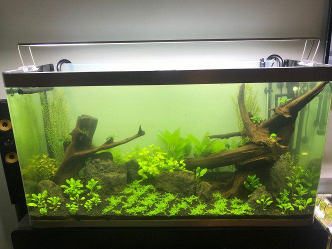 Bonjour à tous J'ai posté il y a quelque temps pour avoir des idées pour mon 180 litres. Alors voilà j'ai installé mes roches et racines. Mais il me faudrait des idées sur les plantes. Je pense mettre des mousses ou plantes rampants au centre. Après je sais pas trop. Pour la population il y aura gourami, danio Galaxy, notropis et puis je sais pas quoi en plus. Je suis ouvert à toutes propos... Afficher la suite