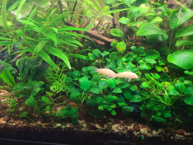 photo 2 == -les corydoras qui dorment sur l'anubias