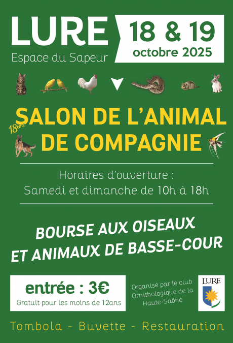 Bonjour à tous, nous organisons le 18 ème salon de l'Animal de compagnie de Lure (70 Haute -Saône) les 18 et 19 Octobre et nous recherchons des éleveurs de poissons exotiques -Si vous êtes intéressé , je peux vous renseigner sur cette manifestation