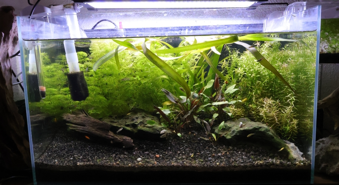 Je travaille en EHPAD à Oullins-Pierre-Bénite et nous souhaitons mettre un aquarium à disposition des résidents âgés. Nous avons à disposition un aquarium de 45/50L (actuellement vide) et nous aimerions le remplir avec des poissons & plantes adaptés à ce volume, conseils et suggestions bienvenus.