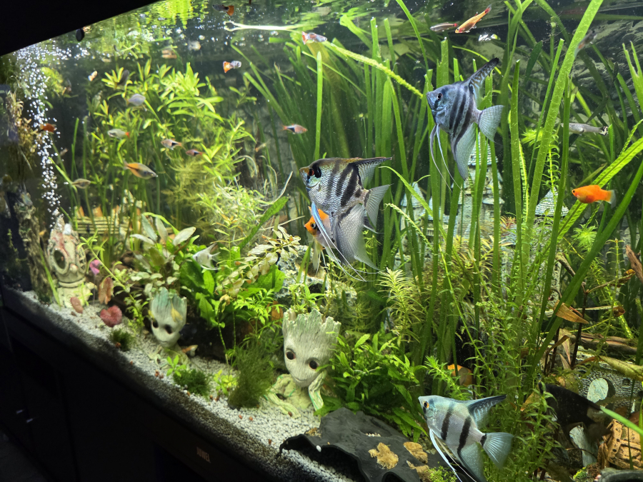 Bonjour j'ai déjà une partie de la réponse à la question mais j'aimerais avoir vos avis. Je pense que je suis à la limite de capacité de mon bac sinon en surpopulation. De base j'ai introduit 1 ancitrus, 6 crevettes red cherry, 6 amanos et 4 corydoras (en 2 temps). Puis j'ai introduit 8 rasbora arlequin et 8 Tetra amandes (pareilles en plusieurs étapes). Dans mes calculs d'espace : 5 cm x4 corydoras = 20cm = 20l donc j'avais encore la moitié d'espace disponible d'où j'ai rajouté 1 gabonica + 1 crevette balai. Le milieu les tetras c'est 2x8=16 et les rasbora c'est 3 voir 4×8=32 L donc là je suis bien limite. L'ancitrus c'était surtout pour nettoyer l'aquarium au départ et il repartira un de ces 4, donc il y aura plus de place au sol. Aussi j'ai remarqué que mes red cherry ont quasiment toutes disparu (il n'en reste qu'une) et j'ai vue apparaître une crevette yellow.