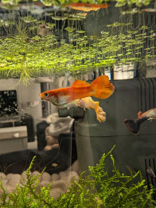 Je débute en aquariophile et j'ai un doute sur l'état de mon guppy orange, je le trouve gonflé, est-ce que quelqu'un aurait une petite idée de ce qu'il pourrait bien avoir ? Si je dois le séparer etc ?