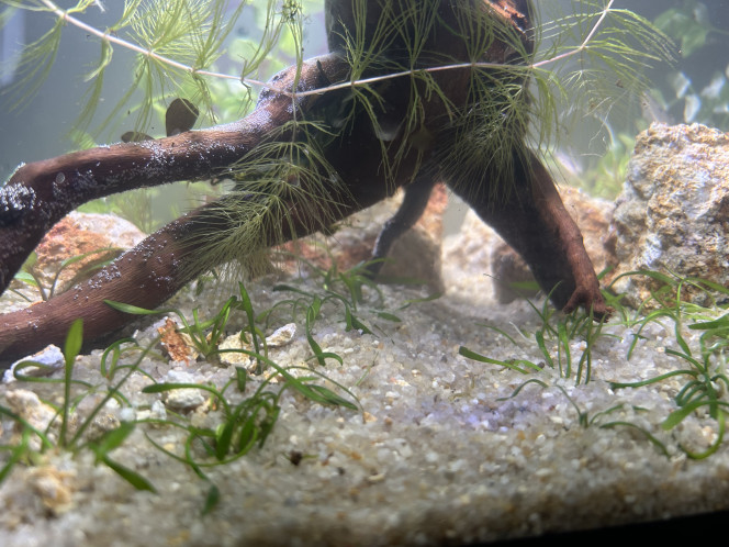 Mes bacs : Ce que vous voyez en photo sont des bacs de transition. Mon but premier est le bien-être de la faune. Mon eau est parfaitement saine, la qualité d'une photo ne remplace pas une mesure de paramètres.