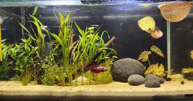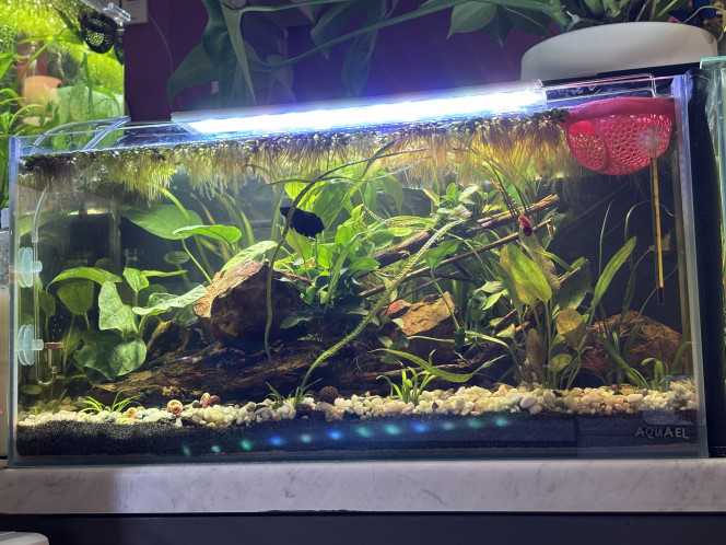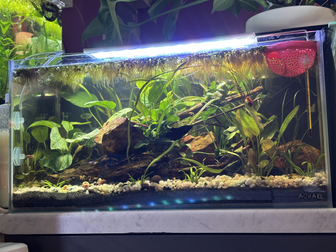 Ce matin je découvre que les œufs de mes corydoras sterbai ont enfin éclos ! Je ne les attendais pas aussi tôt, donc là je suis entrain de préparer un bac de 20L que viens d'acheter pour les mettre bientôt, car en ce moment ils sont dans un éclosoir dans le 80L. Dans leur bac de grossissement je pensais mettre un petit bulleur, des feuilles de chaines et des fruits d'aulnes et un tout petit peu de... Afficher la suite