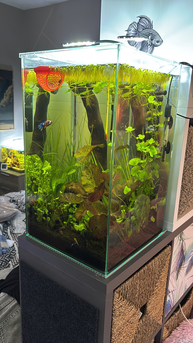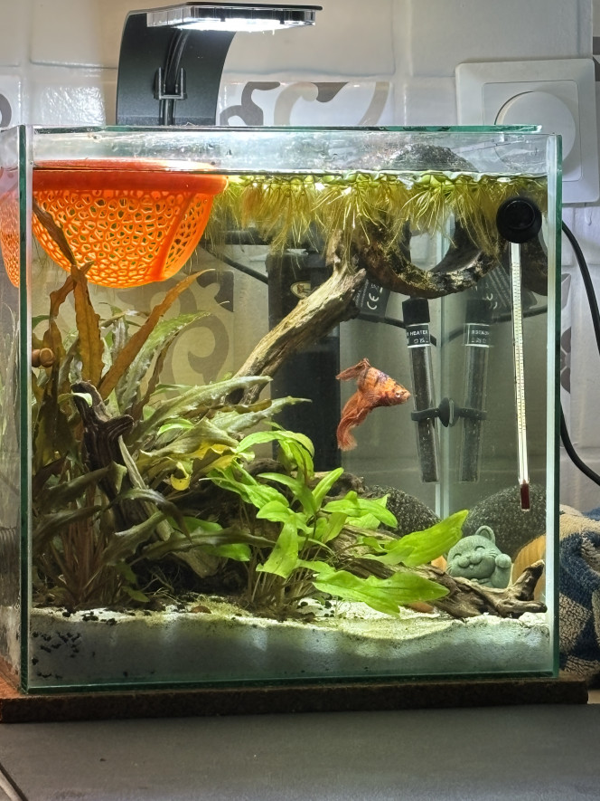 Ce matin je découvre que les œufs de mes corydoras sterbai ont enfin éclos ! Je ne les attendais pas aussi tôt, donc là je suis entrain de préparer un bac de 20L que viens d'acheter pour les mettre bientôt, car en ce moment ils sont dans un éclosoir dans le 80L. Dans leur bac de grossissement je pensais mettre un petit bulleur, des feuilles de chaines et des fruits d'aulnes et un tout petit peu de mousse de java pour qu'ils aient un complément alimentaire avec la microfaune. Il y en a 23 au total, mais il y en a 4 qui tournent en rond sur eux mêmes j ene sais pas pourquoi, j'avais pensé à une malformation🤔.