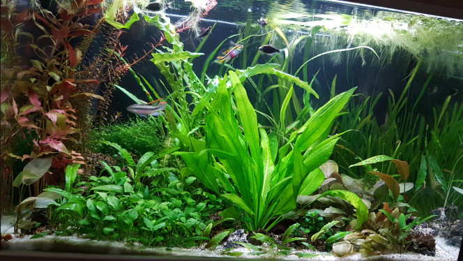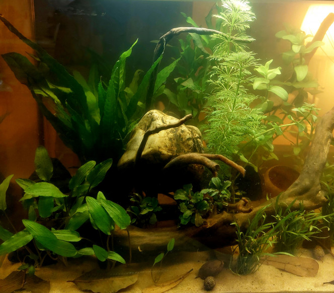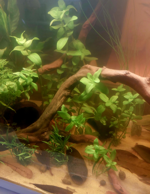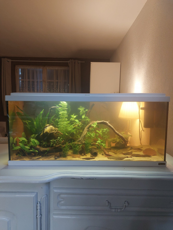 J'ai encore rajouter des plantes pour leur permettre de se cacher, j'aimerais mettre des plantes flottantes mais j'ai peur qu'elles meurent à cause du couvercle :/