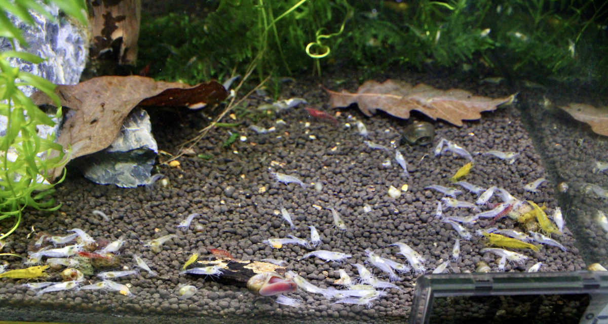 D’après ce que j’en sais, c’est un carnassier extrêmement efficace 😓 mais vu la quantité de crevettes présente dans le bac, elle aurait pu y squatter 20 ans que je ne m’en serais pas rendu compte par rapport au nombre de crevettes….