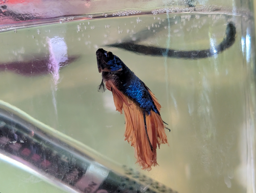 Récupérer gratuitement dans une animalerie car il allait s'en débarrasser (pourriture des nageoires avancée)