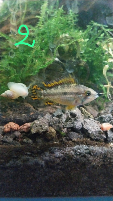 Avec le numero 1 : male (deux pointes sur la caudale)