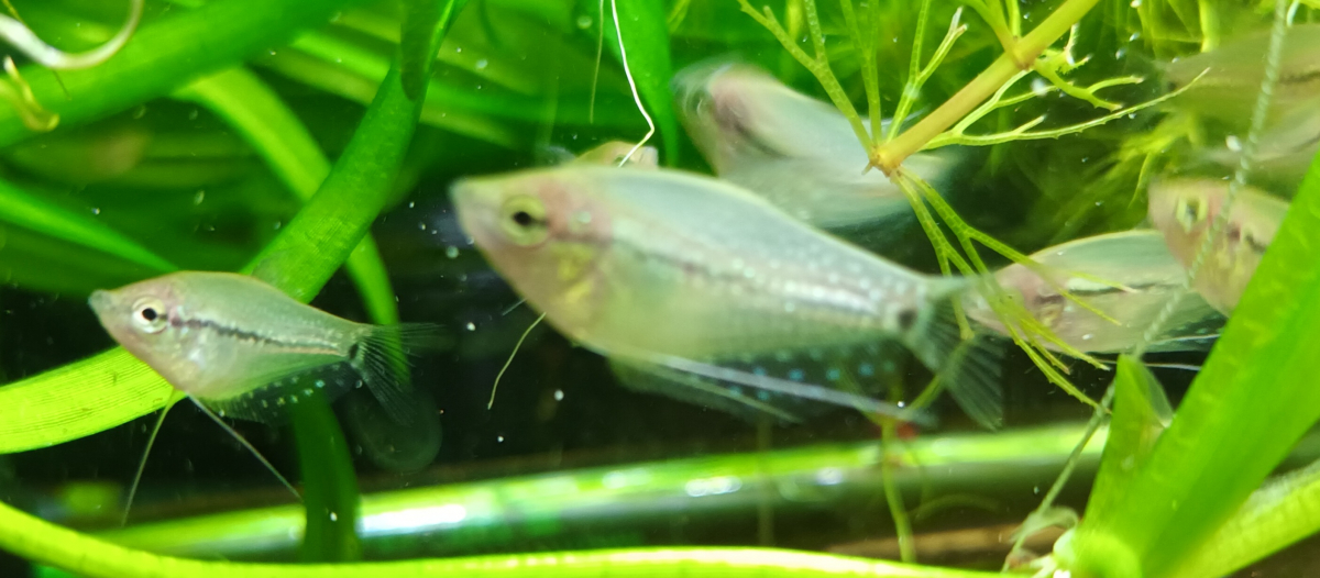 Bonjour à tous je vous propose les photos de ce matin ou pour la première fois on voit nettement les taches perlées sur le corps des poissons !!! Je venais de nourrir ce qui explique les taches dans l'eau...tout ce petit monde semble en pleine forme !!