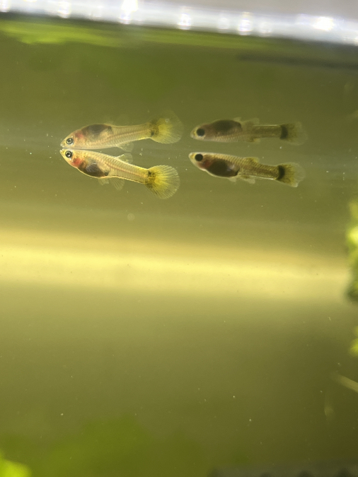 Trois alevins se sont glissés dans le sachet des Otocinclus que j'ai acheté il y a deux semaines. Ils ont bien grandi et commencent à avoir des couleurs. Pouvez vous m'aiguiller quant à la sous espèce/sexe/couleur ou autre ...? Il y en a trois : un bien orangé, un jaune avec une base noire à la queue, un autre jaune mais moins noir que l'autre. Merci :)