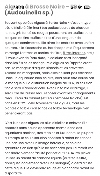 Dans un premier temps, j’ai réussi à les éradiquer et depuis peu, elles ont colonisé l’intégralité du bac. J’ai essayé pas mal de choses, eau oxygénée, APT Fix qui fonctionnent très bien, mais uniquement ponctuellement.