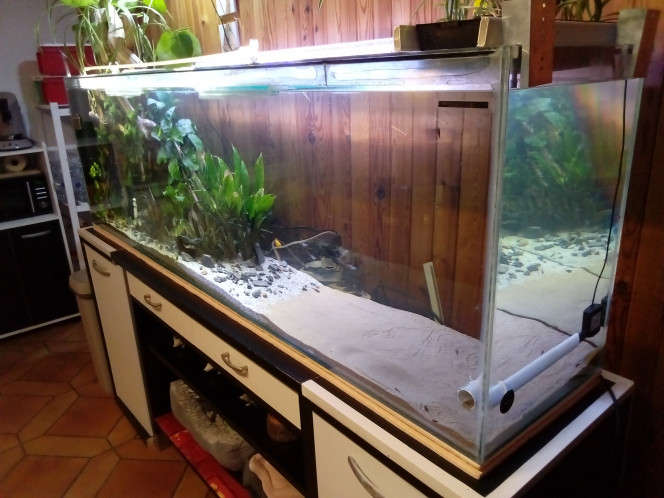 c une solution mais il faut que je le repars pour que je puise le remettre en eau pour les 5 scalaires car il grandisse très vite et dans 240 litres pour moi c trop juste car l'autre fait 480 litres brut 200x60x40