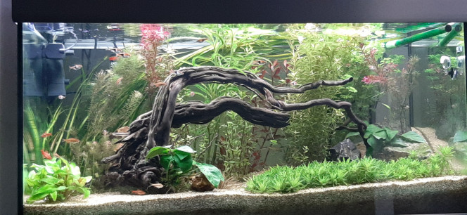 Ne touche pas à la durée de l'éclairage mais plutôt à son intensité si tu le peux. Sinon mets des plantes flottantes.