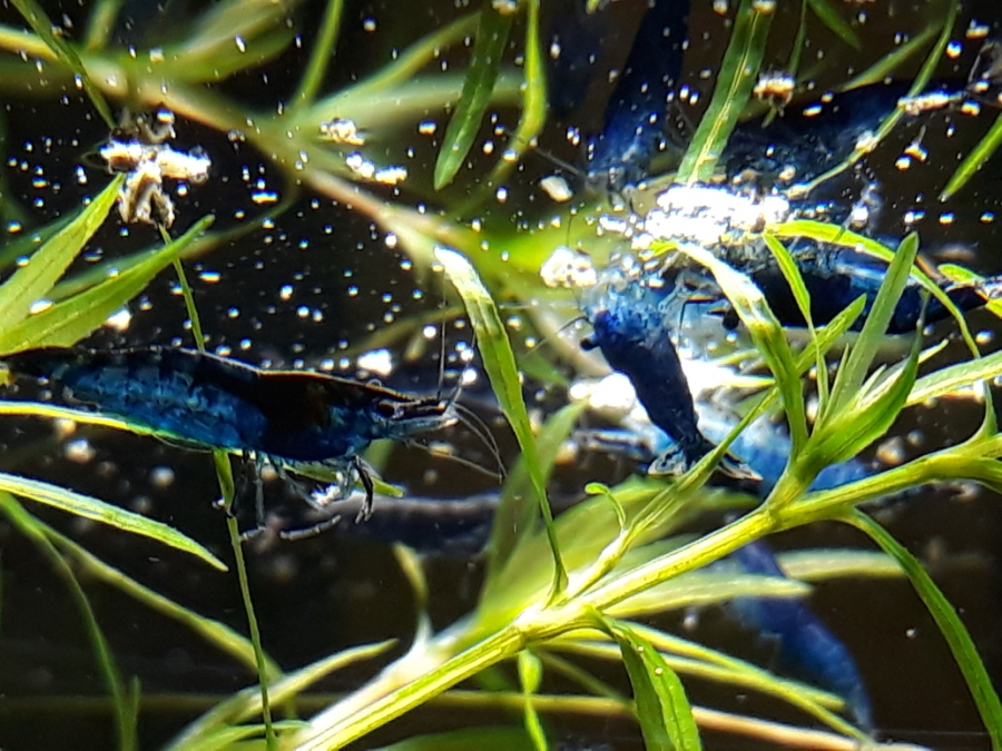 Tout ce qui est granulés ou paillettes pour poissons, c'est du pain béni pour les crevettes. Un peu de protéines ne leurs fait pas de mal.